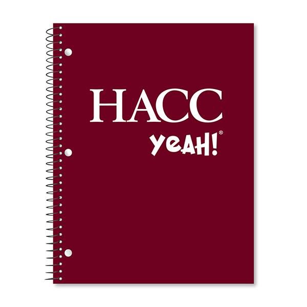7O sheet lined colleged ruled notebook with HACC yeAH! cover.