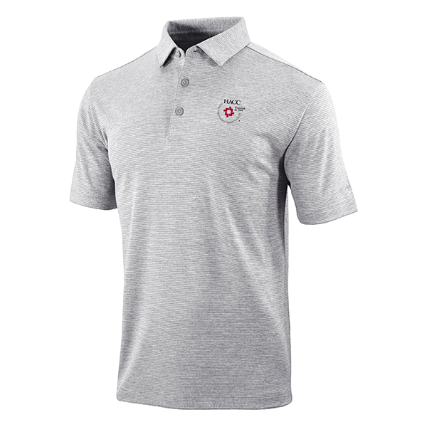 Omni-WICK™, Omni-Shade™ UPF 30 sun protection. Self Fabric collar with sewn in collar stays. 100% Polyester.