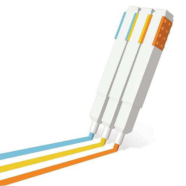 - Unique highlighter with 2-2x4 genuine LEGO® plates affixed to the barrel