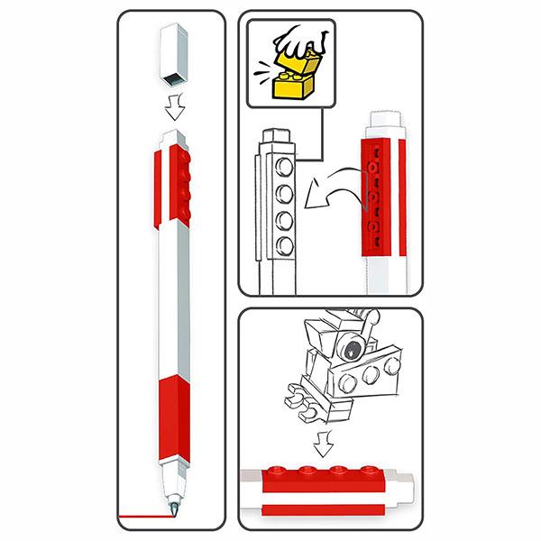 - Unique gel pen with 2-1x4 genuine LEGO® plates affixed to the barrel